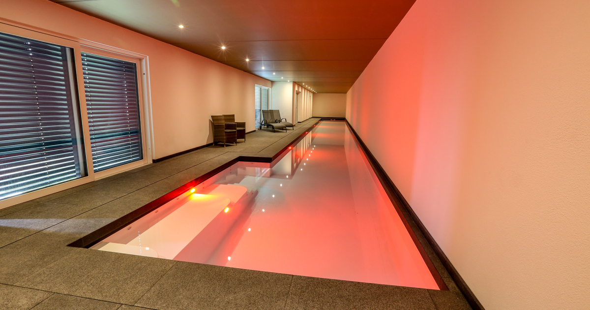 Contrairement à un couloir de nage extérieur, une installation intérieure n’est pas soumise aux caprices de la météo, vous pouvez donc l’utiliser à tout moment de l’année. Autre avantagé de l’intérieur, vous n’avez pas à vous soucier de l’exposition au soleil ou des insectes.
