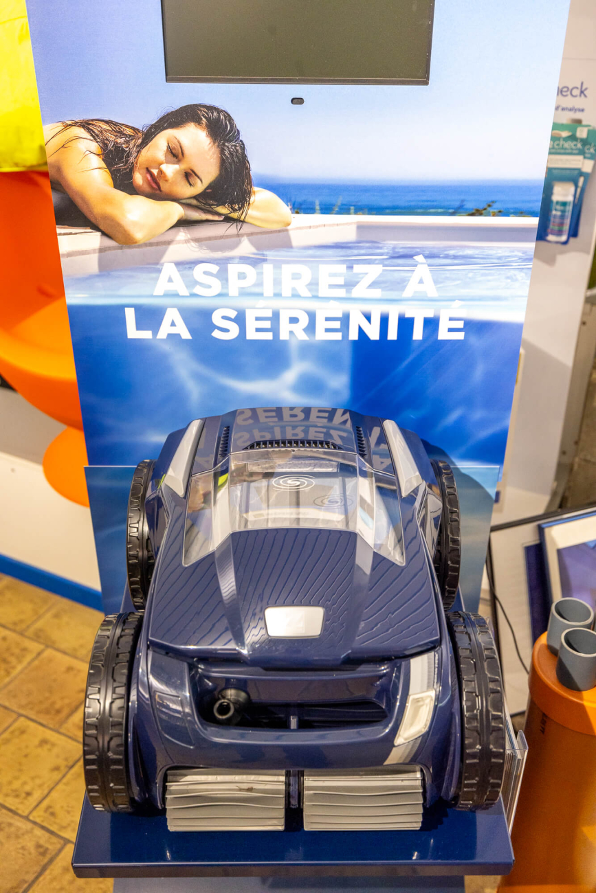 Dans notre showroom, vous pouvez également découvrir notre gamme de robots nettoyeurs pour piscines. Ces appareils modernes et efficaces sont conçus pour faciliter l'entretien de votre piscine. Venez les voir en action dans nos piscines d'exposition et laissez-vous convaincre par leur performance et leur praticité.